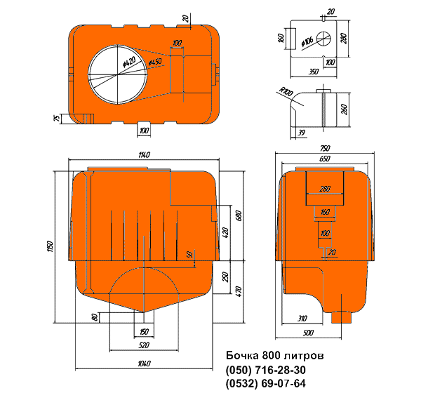 Материал: полиэтилен, устойчив к ультрафиолетовому воздействию, на изменяет физических, химических свойств. Бочки легко монтируются, опрыскиватели не переворачиваются (заниженный центр тяжести). При промывке этих емкостей, осуществляется полный слив раствора жидкости без каких-либо дополнительных преобразований. Рабочая температура от -40 до +60°C