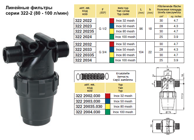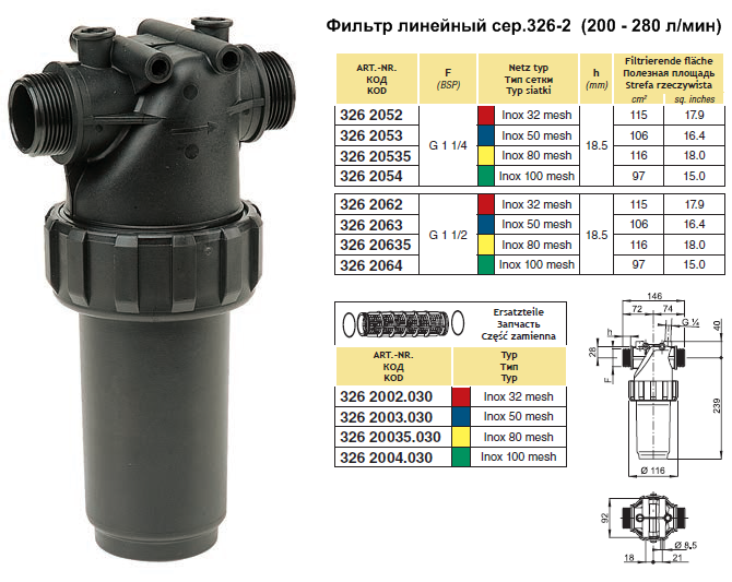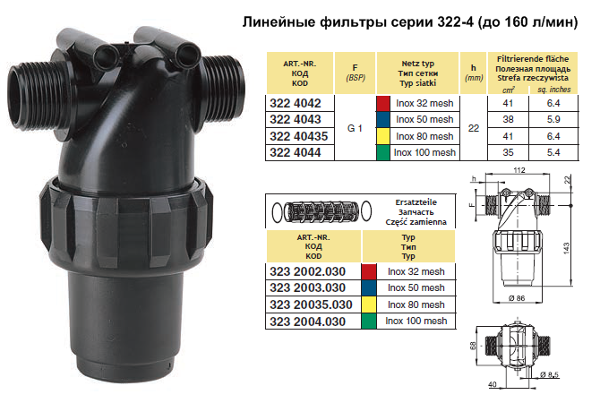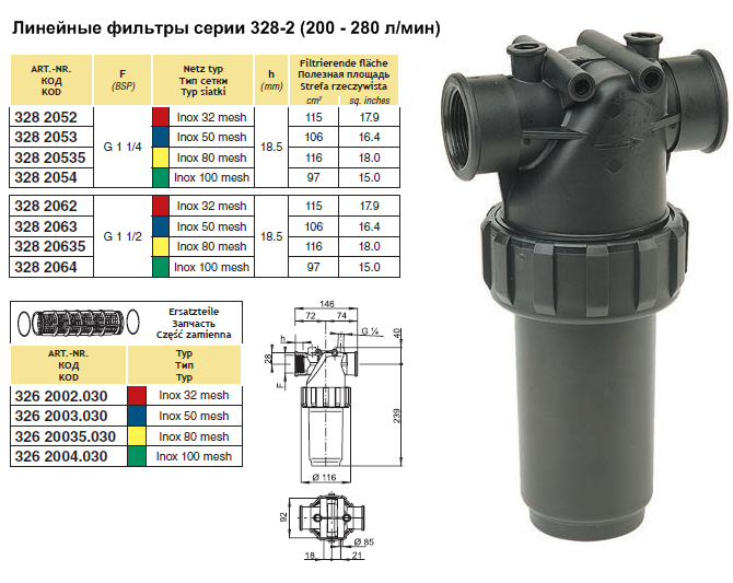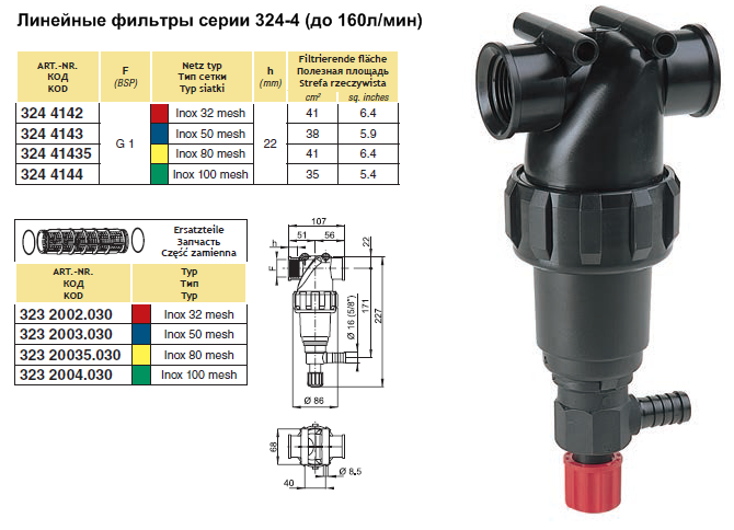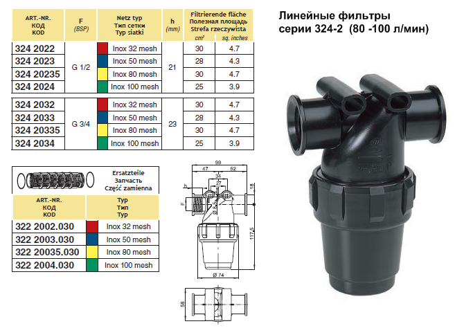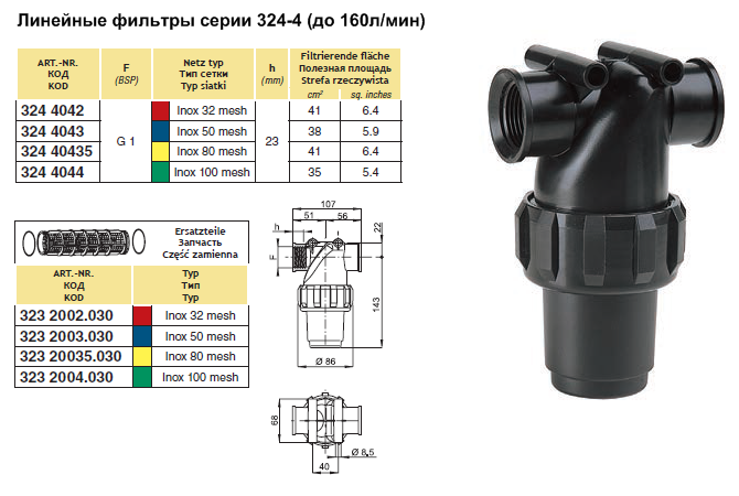 Линейные фильтры серии 324-0 (55 л/мин) резьба внутренняя