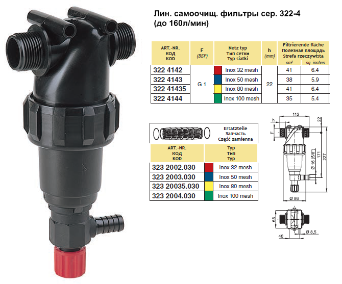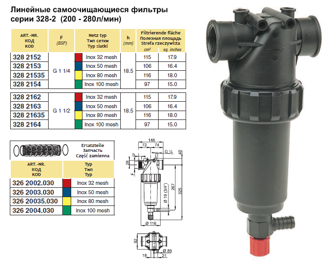 • Фильтрующая способность 55 л/мин при давлении 0,5 бара