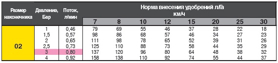 Характеристики розпилювачів КАС FC-HESI Hypro: