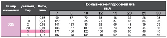 Характеристики розпилювачів КАС FC-HESI Hypro: