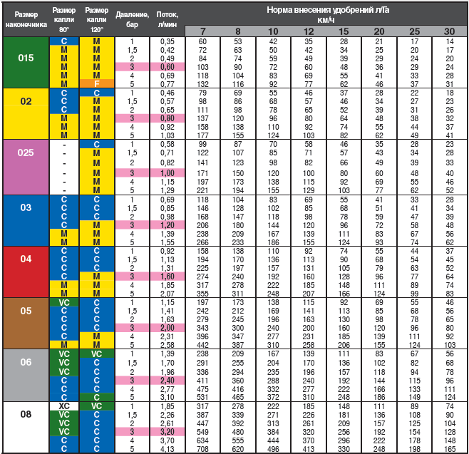Обозначение распылителей LD Hypro (полимер) распылитель LD110-015 зеленый распылитель LD110-02 желтый распылитель LD110-025 лиловый распылитель LD110-03 синий распылитель LD110-04 красный распылитель LD110-05 коричневый распылитель LD110-06 серый распылитель LD110-08 белый |