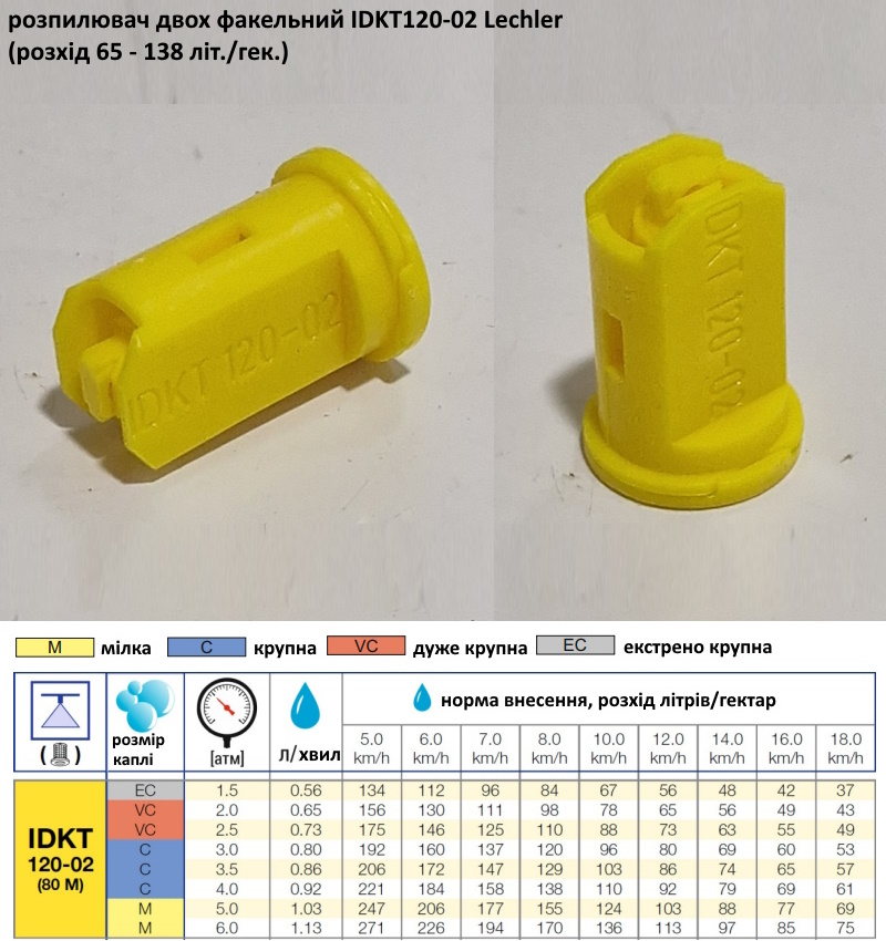 • Позначення розпилювачів IDKT Lechler (полімер)
