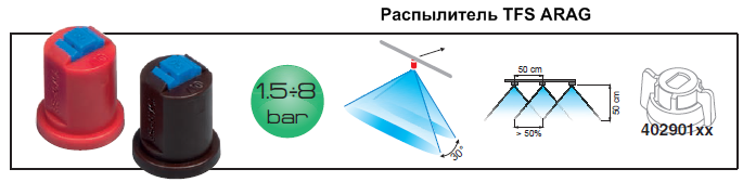 • Угол распыла факела позволяет отлично распределить жидкое удобрение.