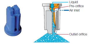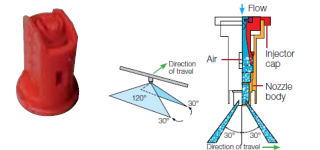 MINIDRIFT DUO Air inclusion nozzles. MINIDRIFT DUO nozzles can be used for spraying under sub-optimal conditions for drift reduction. MINIDRIFT DUO air inclusion nozzles offer droplet spectrums from medium to very coarse. They are used for drift reduction without compromising coverage and deposition on leaves. A dual orifice combination increases the number of droplets and impact angle compared to single rifice nozzles. This improves the coverage on foliage and vertical targets. The injector can be removed for cleaning. The MINIDRIFT DUO nozzle features: ![]() • Working pressure 1.5 to 6 bar • ISO flow, colours, sizes and dimensions • 30° forward and backward angle • SYNTAL precision moulded thermoplastic • Boom heights from 35 to 70 cm (50 cm optimum) |