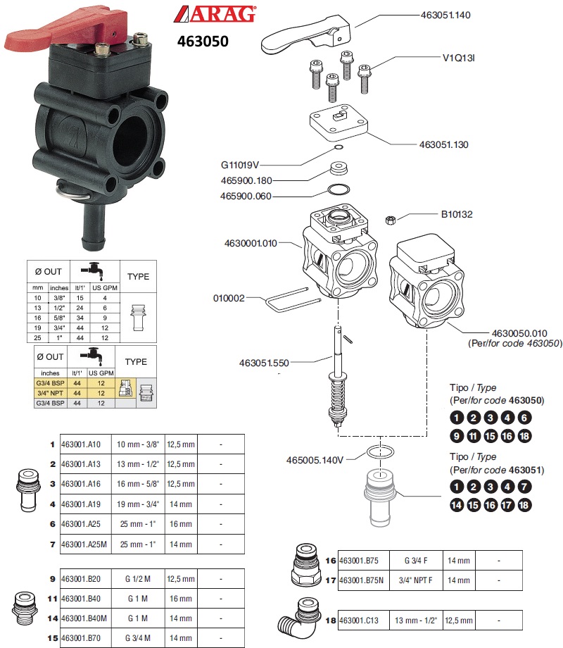 Секция регулятора давления ARAG в сборе 463050 Штуцер выхода на секции: 463001.A10 штуцер диаметром 10мм 463001.A13 штуцер диаметром 13мм прямой 463001.A16 штуцер диаметром 16мм 463001.A19 штуцер диаметром 19мм прямой 463001.A25M штуцер диаметром 25мм ![]() |