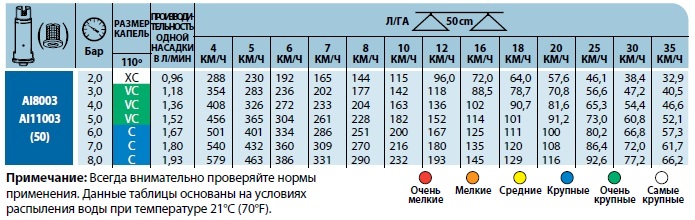 • Изготавливаются наконечники с восемьювидами производительности и рекомендованным давлением 2–8 бар (30–115 PSI).