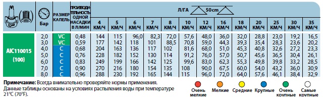Характеристики розпилювача AIC110 TeeJet: