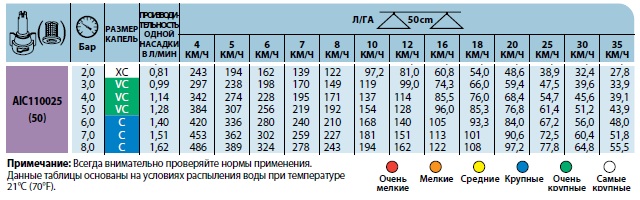 Позначення розпилювачів AIC110 TeeJet з квіткокодуванням VisiFlo