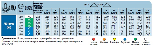 Характеристики розпилювача AIC110 TeeJet: