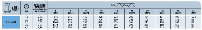 • Десять розмірів для забезпечення широкого діапазону норм розпилення