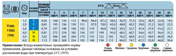 Характеристики розпилювача TTJ60-110 TeeJet: