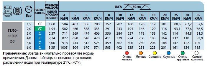 Характеристики розпилювача TTJ60-110 TeeJet: