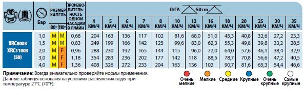 Характеристики распылителя XRC110 TeeJet: