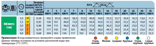 Позначення розпилювачів XRC110 TeeJet з квіткокодуванням VisiFlo