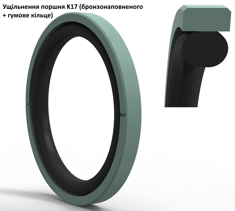 К17 - двокомпонентне ущільнення поршня двосторонньої дії, що складається з одного профільного ущільнюючого елемента з PTFE+Br і круглого кільця з NBR як підсилювач. Характеристика манжети ![]() |