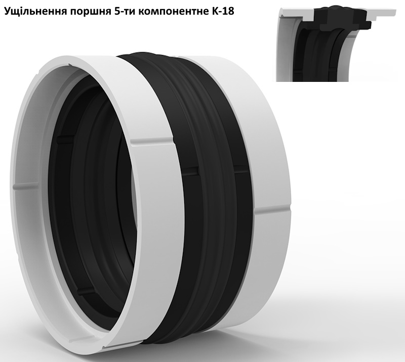 К18 - п'ятикомпонентне ущільнення поршня двосторонньої дії, що складається з ущільнювального елемента NBR, двох опорних елементів і двох напрямних спеціального профілю. Характеристика манжети ![]() |