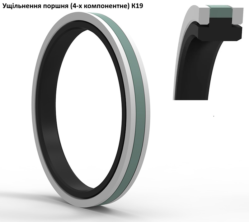 К19 - чотирикомпонентне компактне ущільнення для важких режимів експлуатації, що складається з профільного ущільнення PTFE+бронза, еластичного елемента з NBR та двох опорних кілець. Характеристика манжети ![]() |