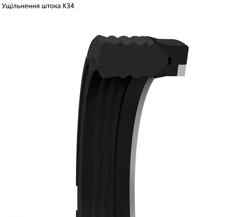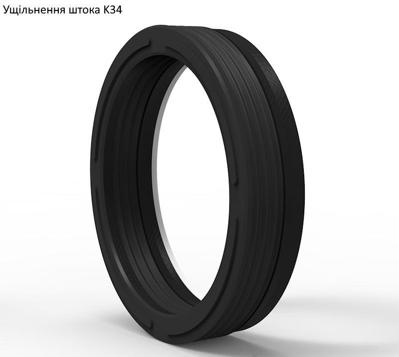 Ущільнень штока односторонньої дії K34, до складу пакета входить опорне кільце з зміцненої бавовняної тканини або термопластичного еластомеру, еластичний елемент з нітрильного каучуку з декількома кромками і термопластичне антиекструзійне кільце. Харектеристика ущільнення ![]() ![]() |